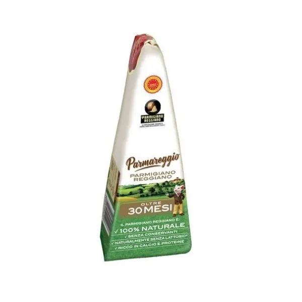 El Parmareggio Parmigiano Reggiano 30 mesi 150g es un queso duro italiano con Denominación de Origen Protegida (DOP), envejecido durante 30 meses para desarrollar un sabor intenso, complejo y una textura granulada única. Este queso es perfecto para rallar sobre pastas, risottos o para disfrutar en tablas de quesos gourmet.