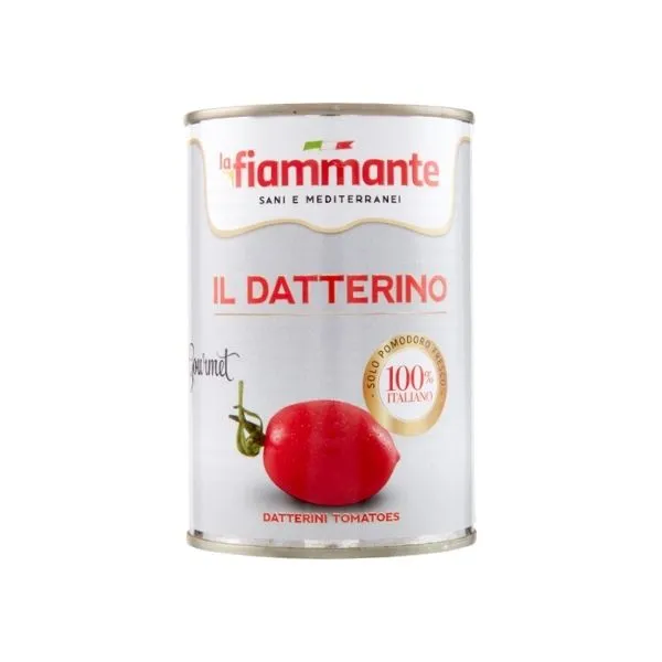Il Datterino de La Fiammante es un tomate cherry italiano de alta calidad, dentro de un tarro de 400 g. Con su sabor intenso y ligeramente dulce, este tomate conserva todo el aroma y la frescura mediterránea. Ideal para ensaladas, bruschetta, aperitivos o como guarnición en platos de pasta y arroces.