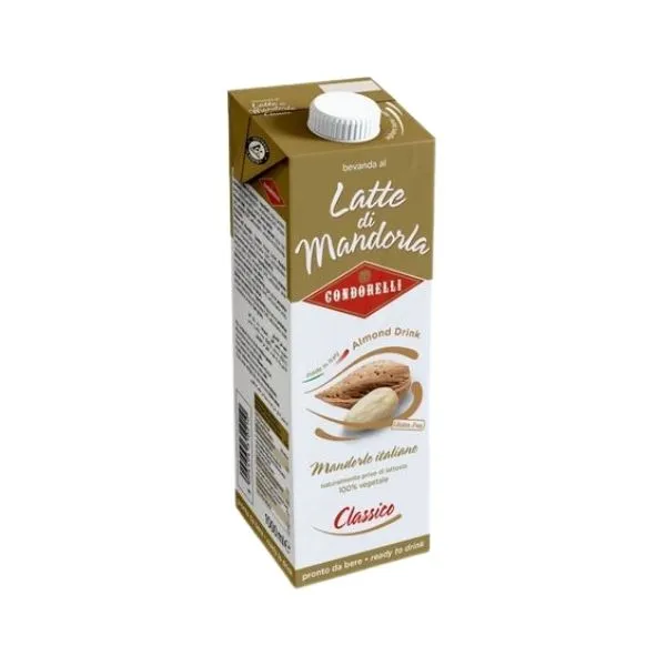 El Latte Mandorla Italiana Condorelli es una bebida vegetal tradicional elaborada con almendras italianas seleccionadas. De sabor dulce y natural, es ideal para tomar fría, como base de postres, o diluida con agua como refresco típico del sur de Italia.